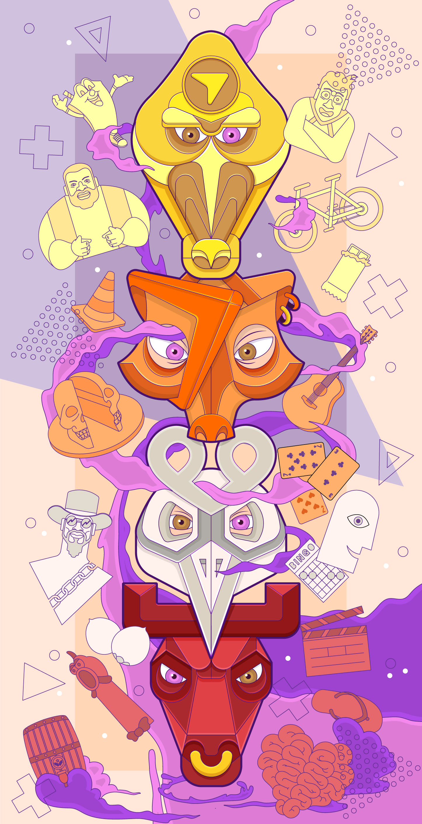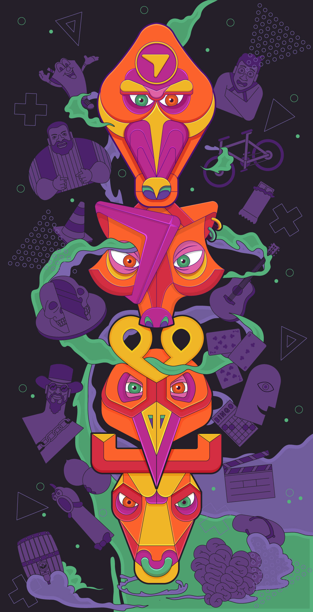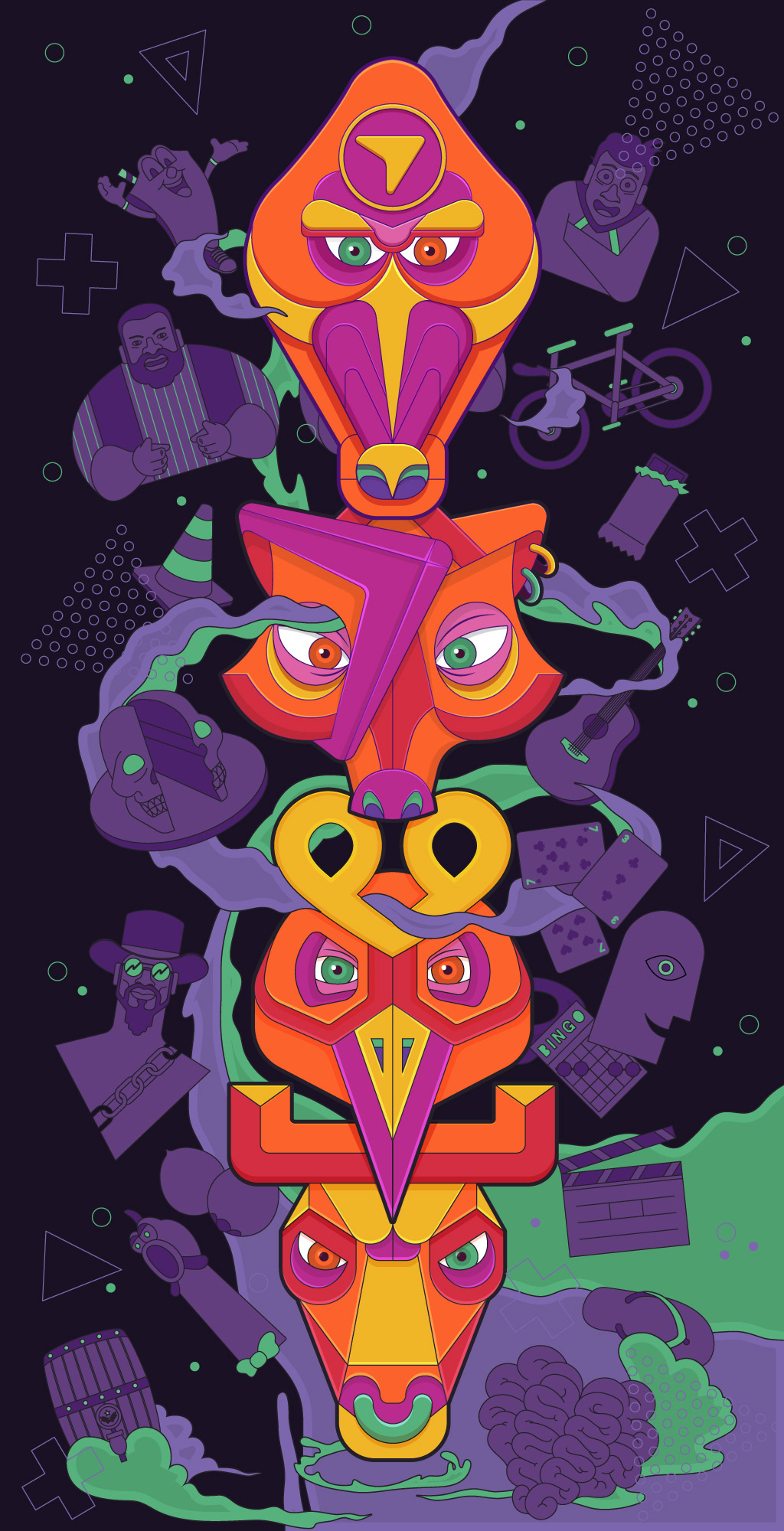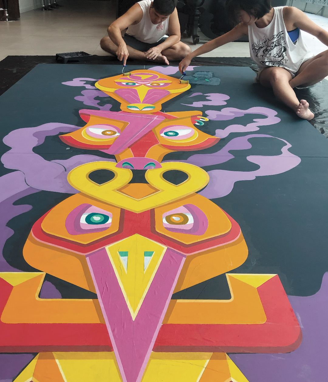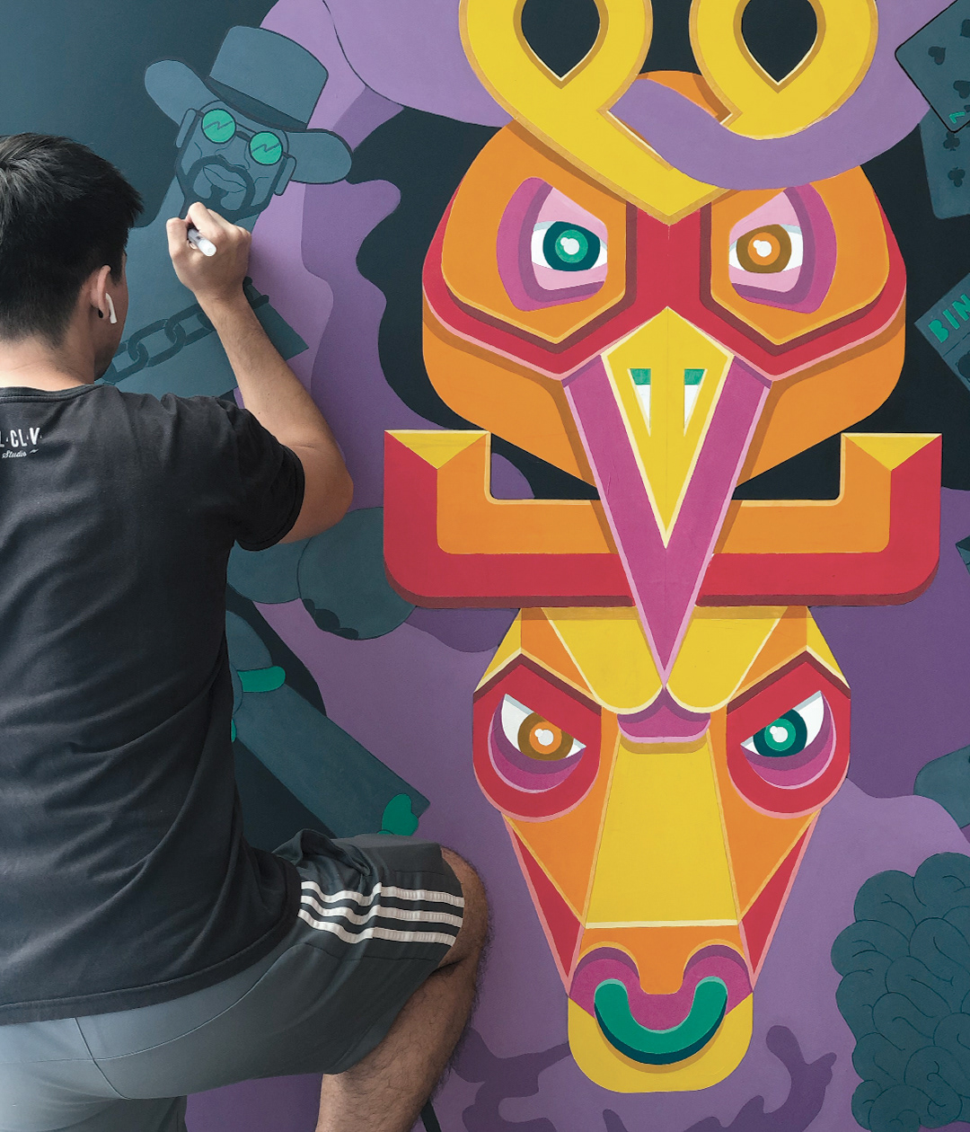 invited us to create a panel that should represent a very important moment in their business. By that time the company was gathering four start-ups and the painting should represent each one's essences getting together.