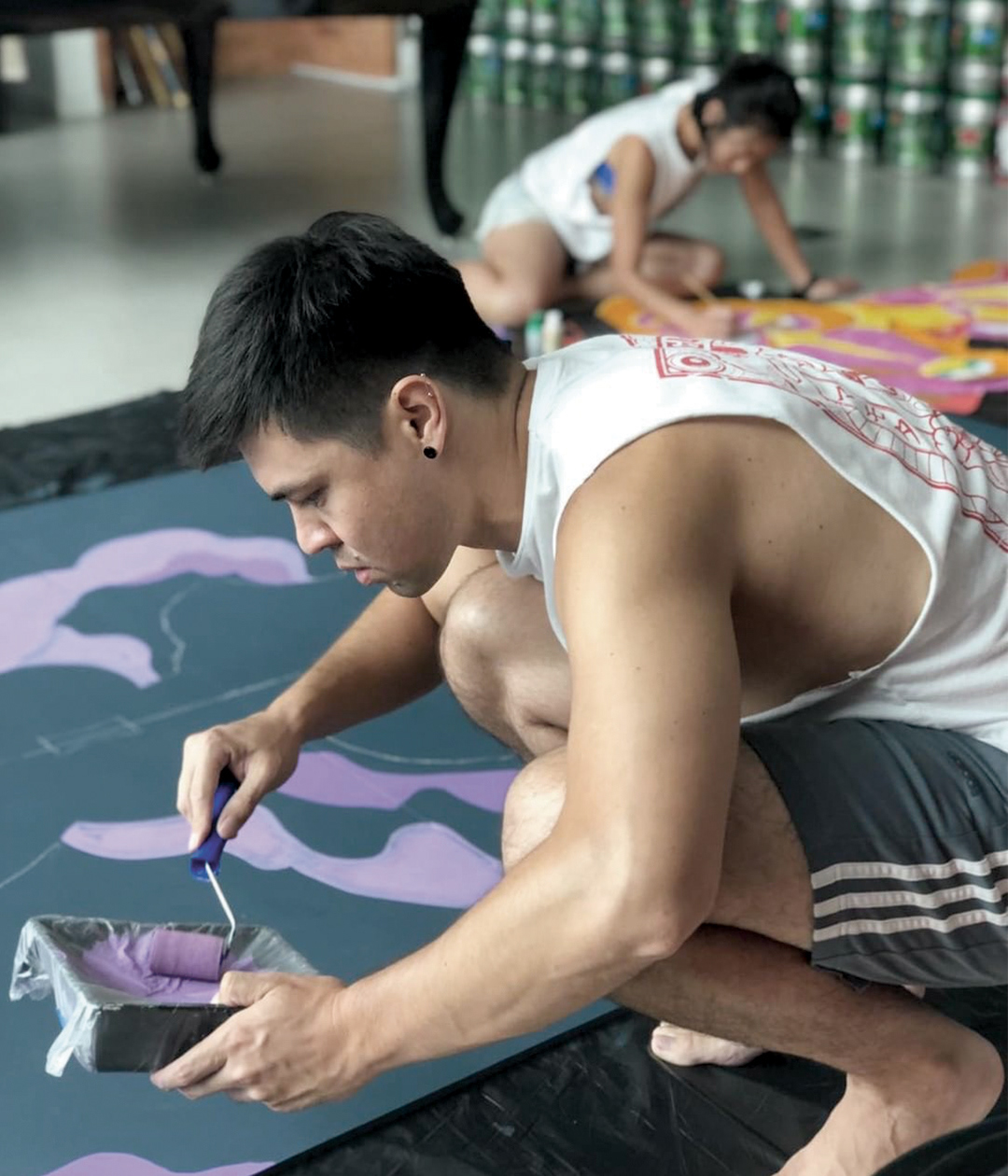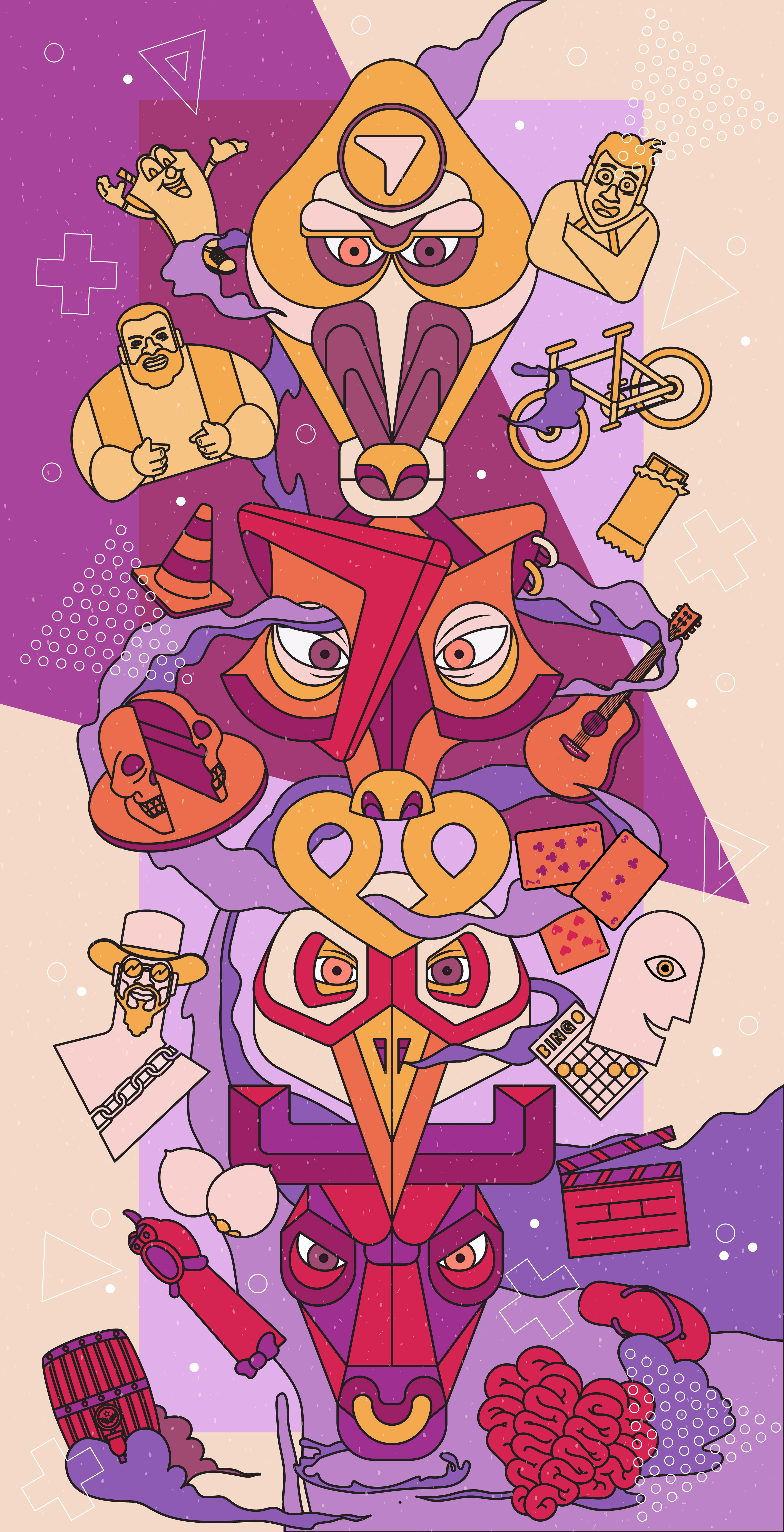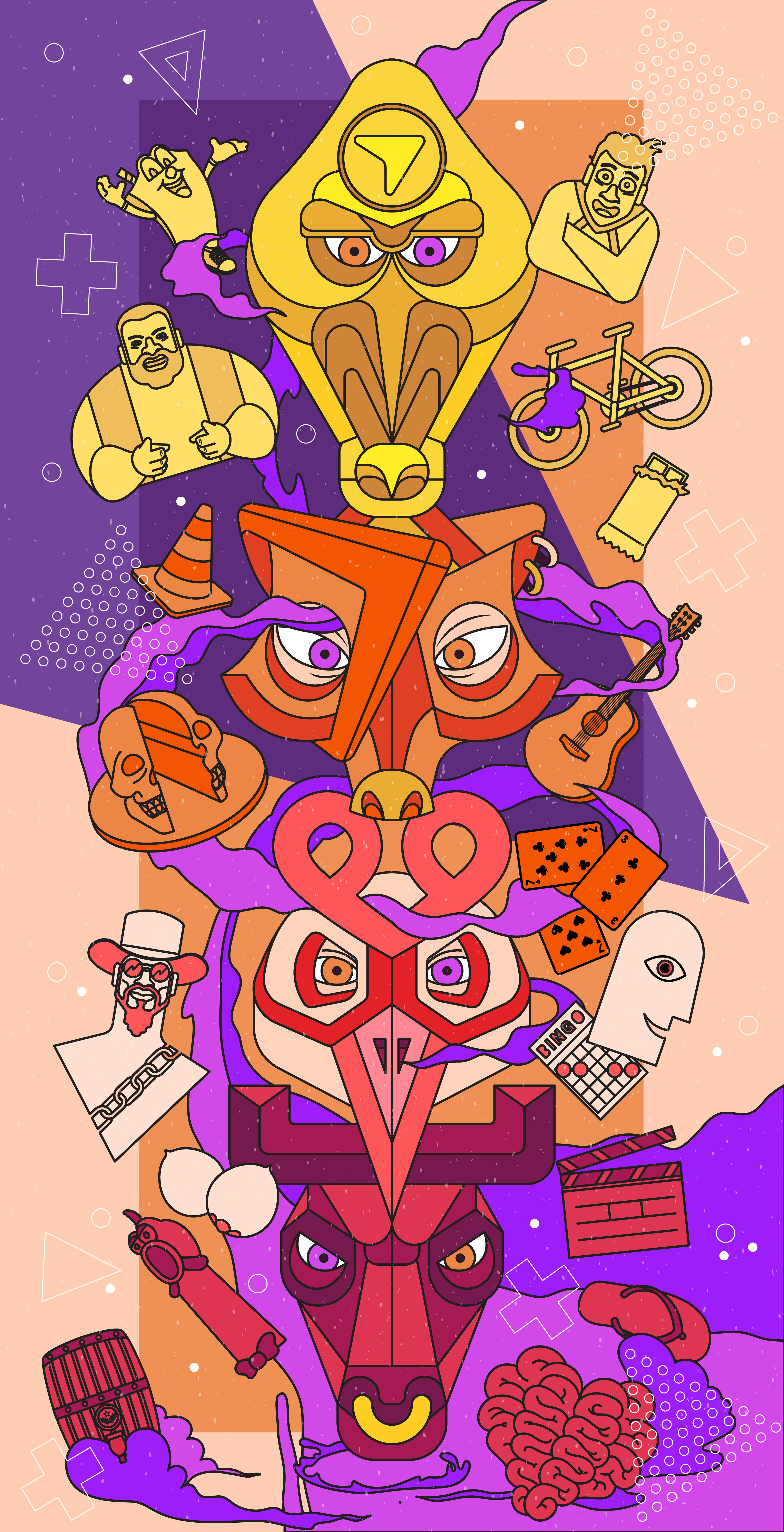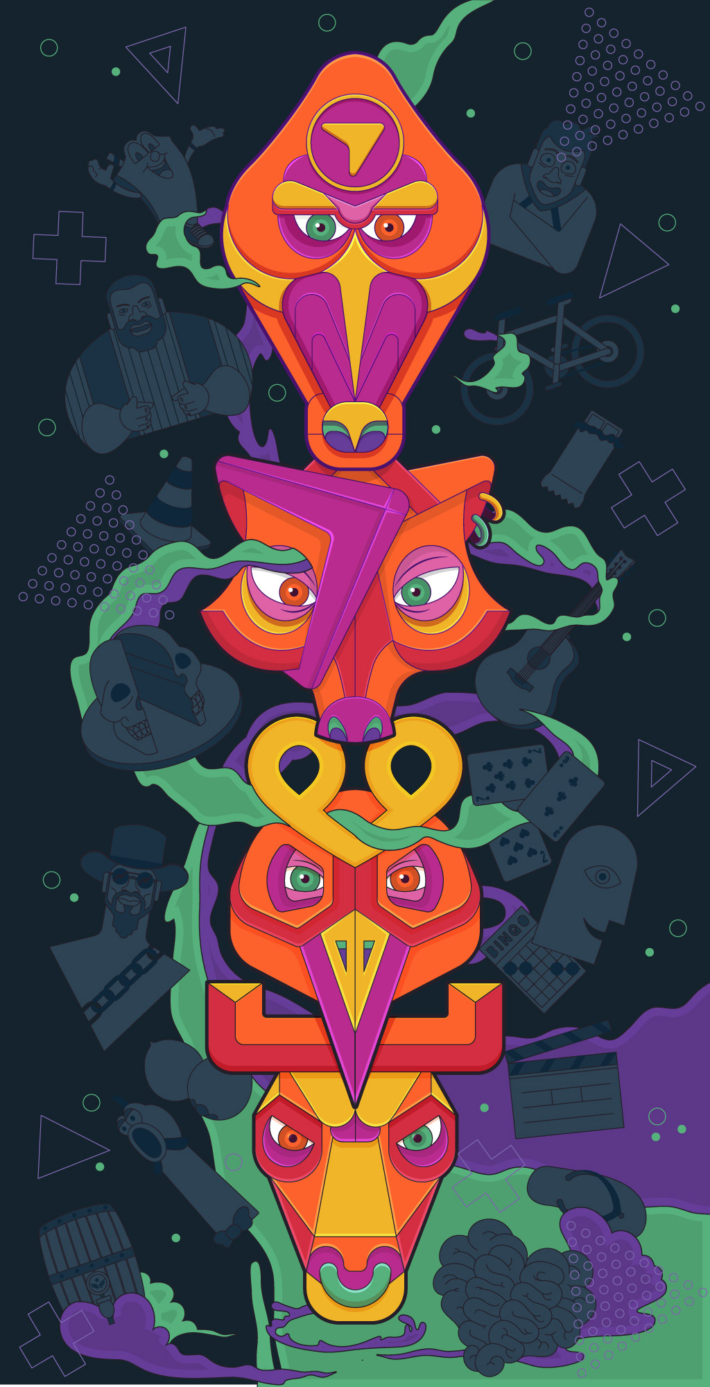 invited us to create a panel that should represent a very important moment in their business. By that time the company was gathering four start-ups and the painting should represent each one's essences getting together.