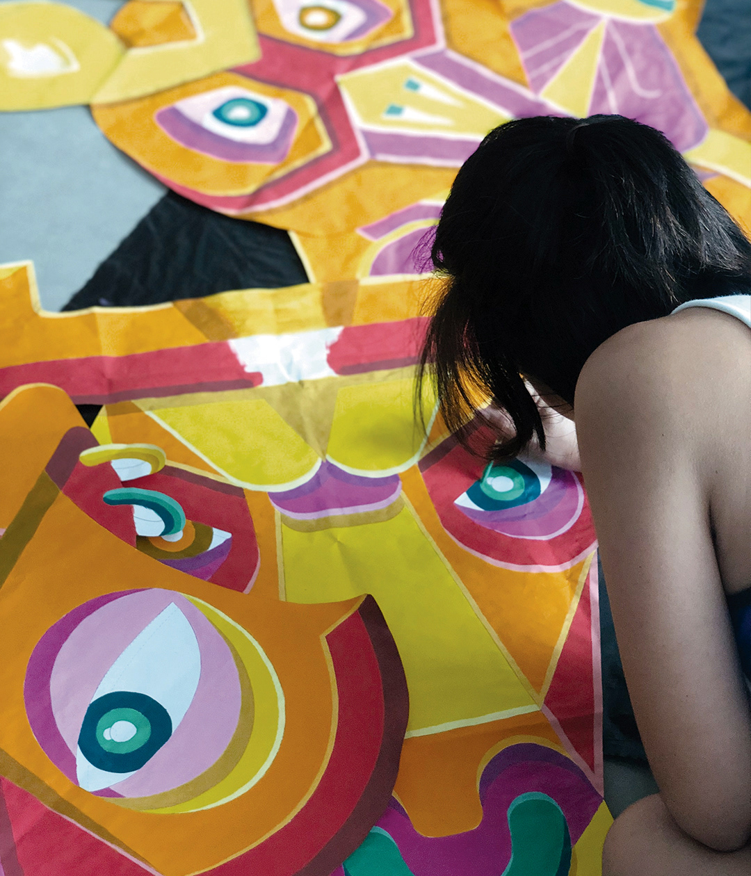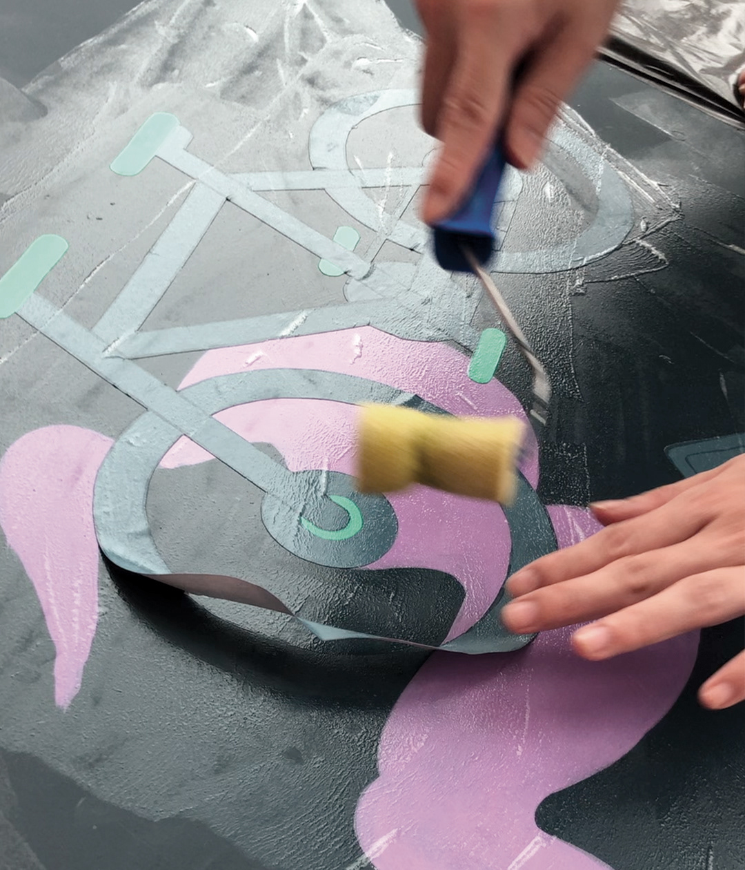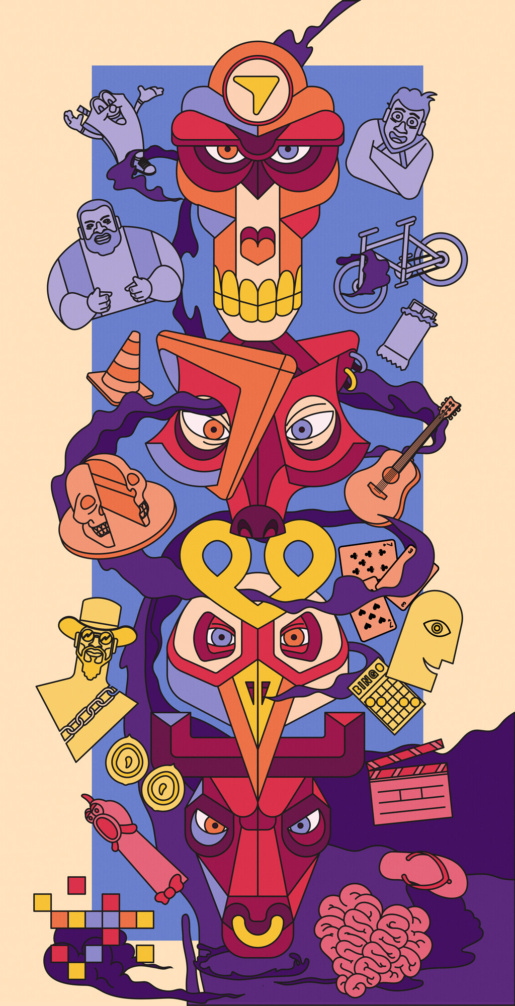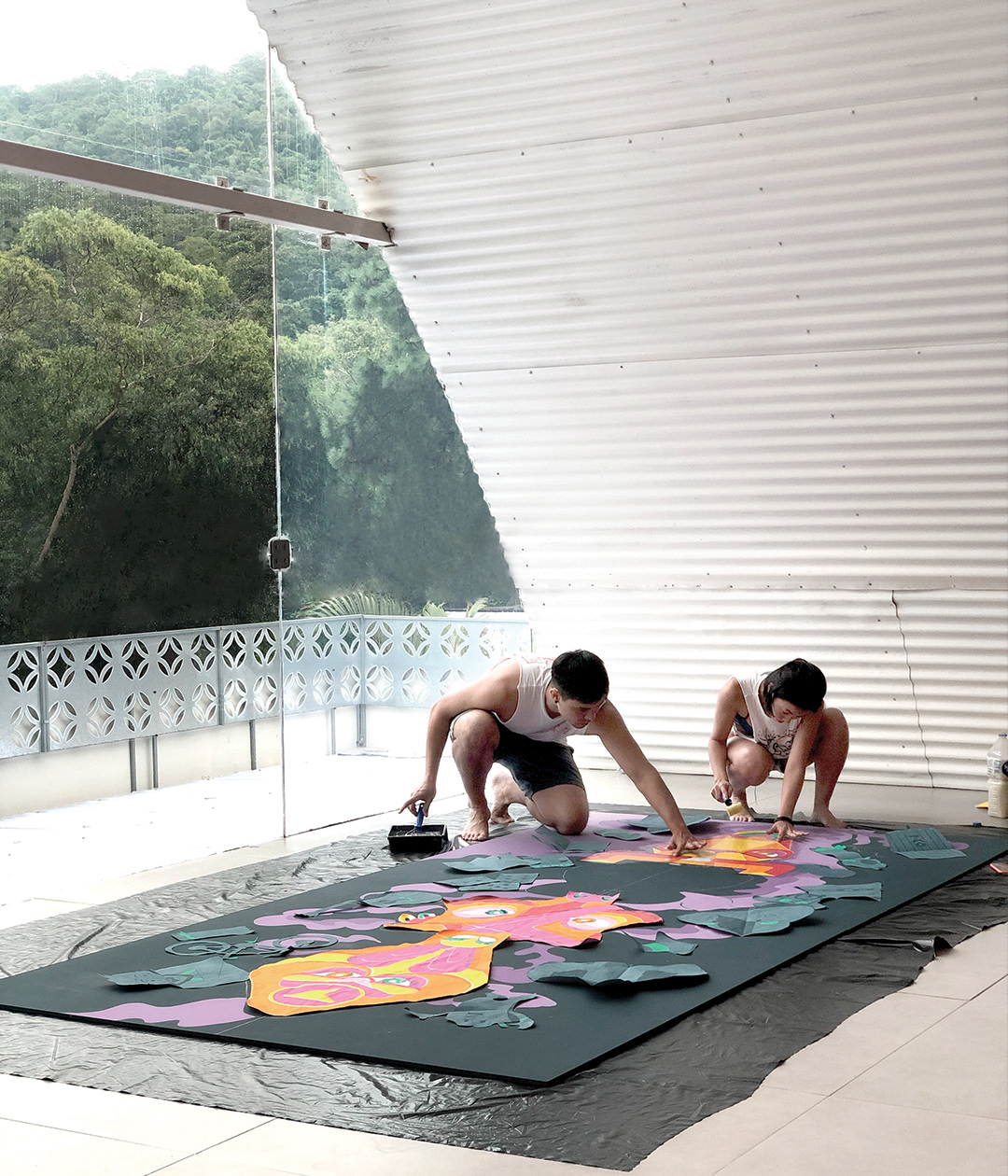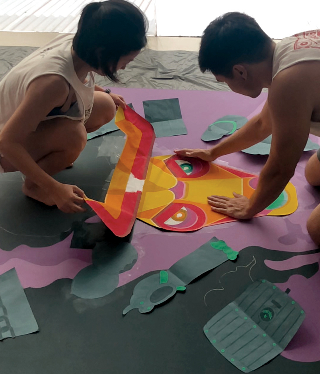 invited us to create a panel that should represent a very important moment in their business. By that time the company was gathering four start-ups and the painting should represent each one's essences getting together.